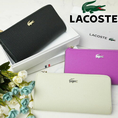 【あす楽】【送料無料】ラコステ LACOSTE CHANTACO ピケレザー カード8枚収納 財布 レディース NF2071C シャンタコ ピケレザーロングジップウォレット サイフ 黒 ブラック 本革 牛革 evid /-